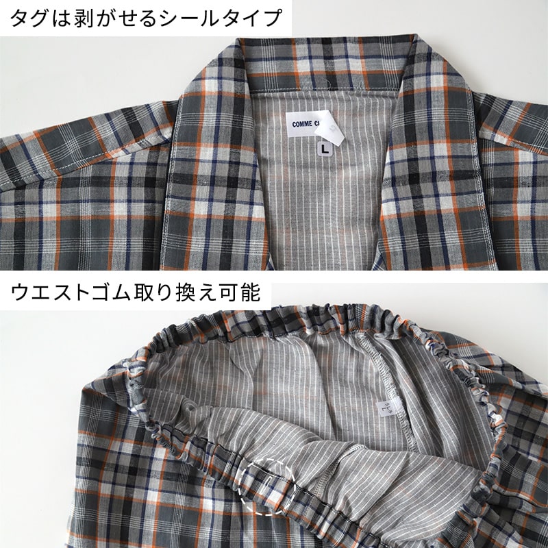 ウエストゴム取り換え可能 先染Wガーゼ 前閉じ