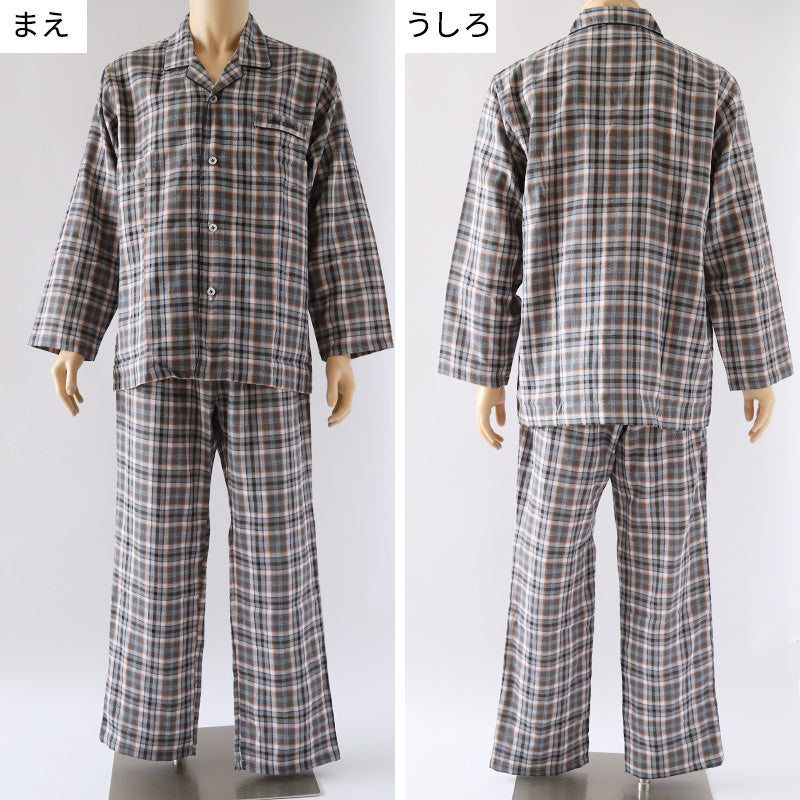 GUNZEの「COMME CI COMME CA(コムシコムサ)」シリーズの紳士長袖パジャマ(先染Wガーゼ)です。
