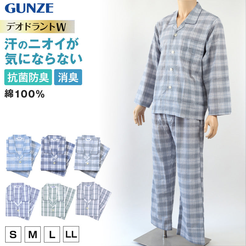 【メンズ】/【パジャマ・ルームウェア】/【長袖】/【S】/【M】/【L】/【LL】/【GUNZE[グンゼ]】/【グレー系】/【ネイビー系】/【ブルー系】/【柄】/【綿100%】/【夏物】/【抗菌防臭】/【消臭加工】