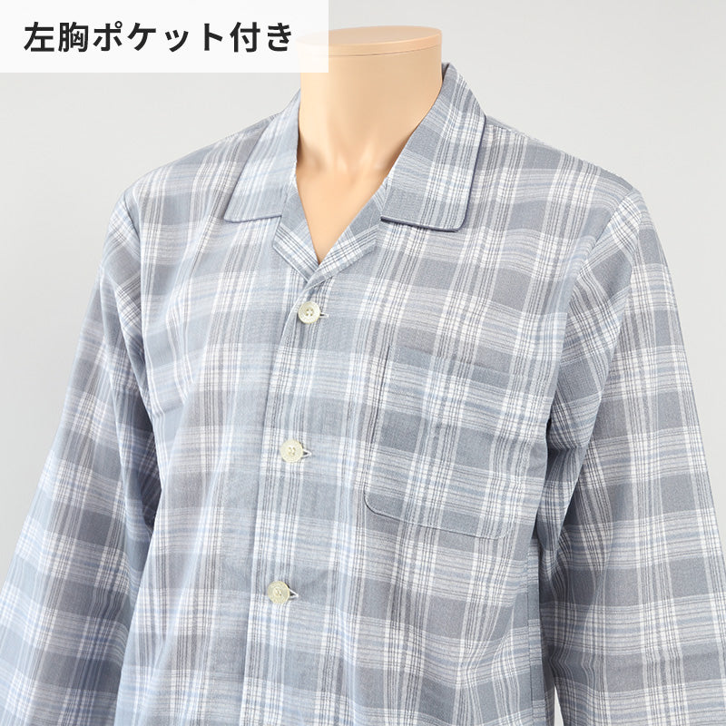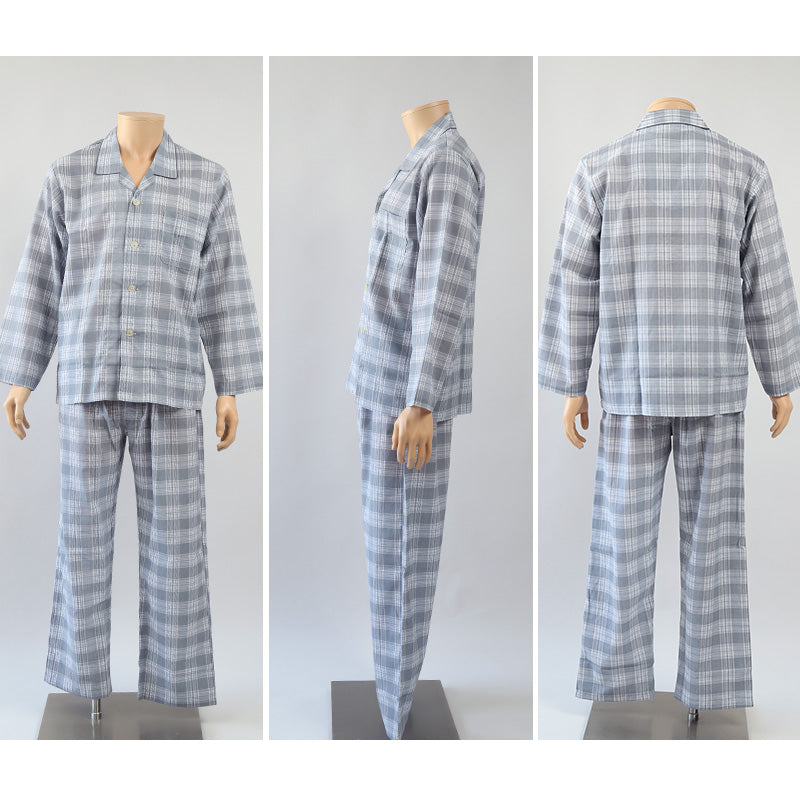 チェック柄/ブルー系/グレー系/春/夏/秋/シンプル/男性/紳士/前開き/上下セット/リラックス/湯上り/薄手/しまむらファンにおすすめ m-room-alw SF2245 SF2314/gz294