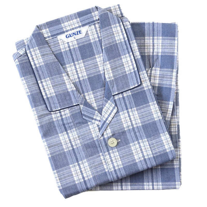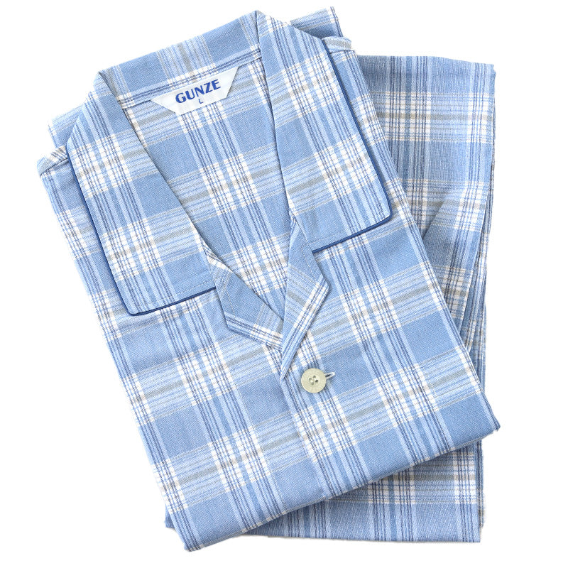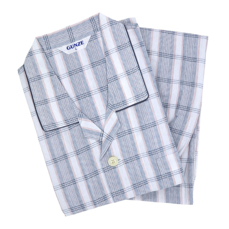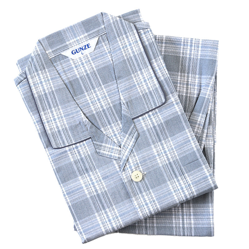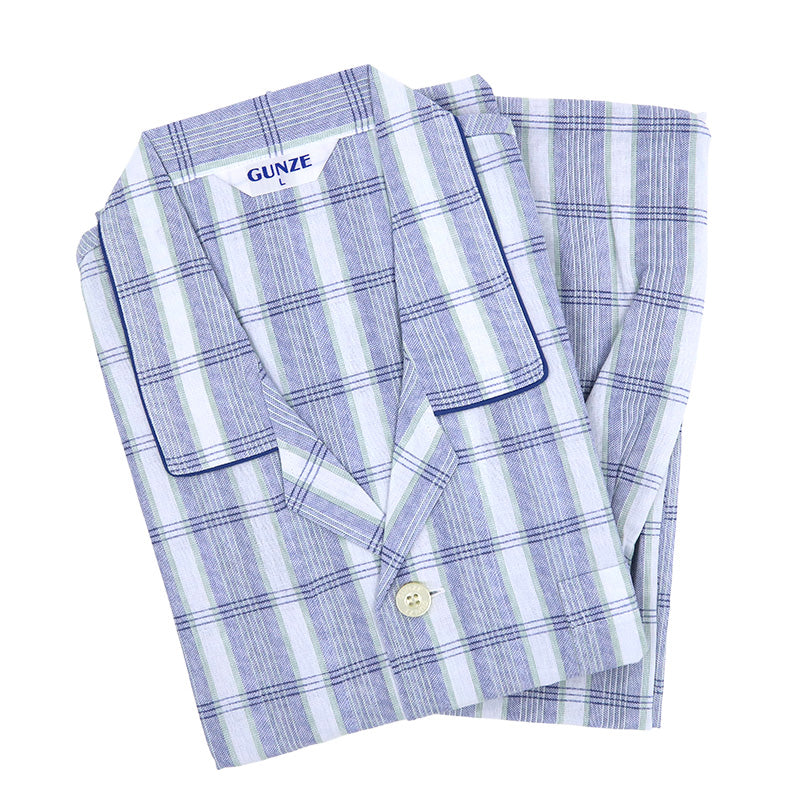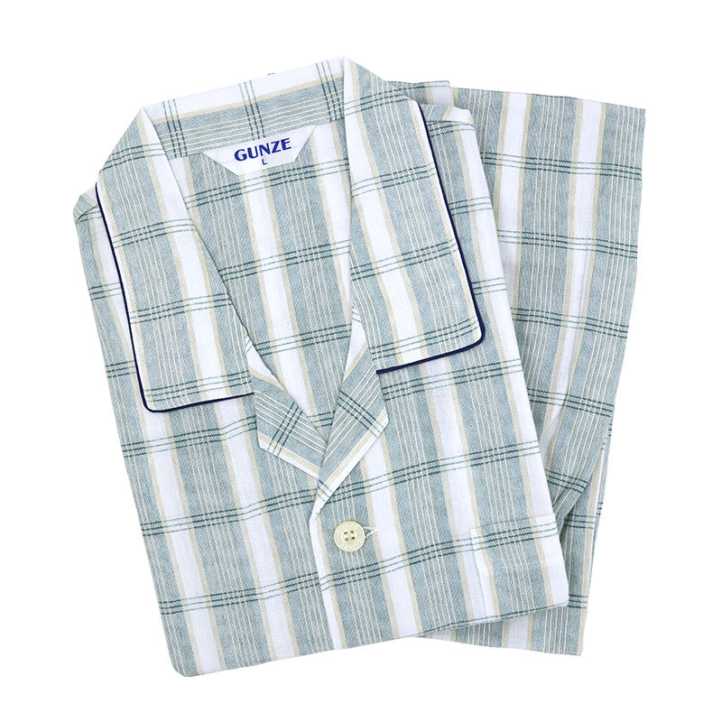 GUNZEのこだわりパジャマシリーズより、紳士用の長袖長ズボンパジャマです。