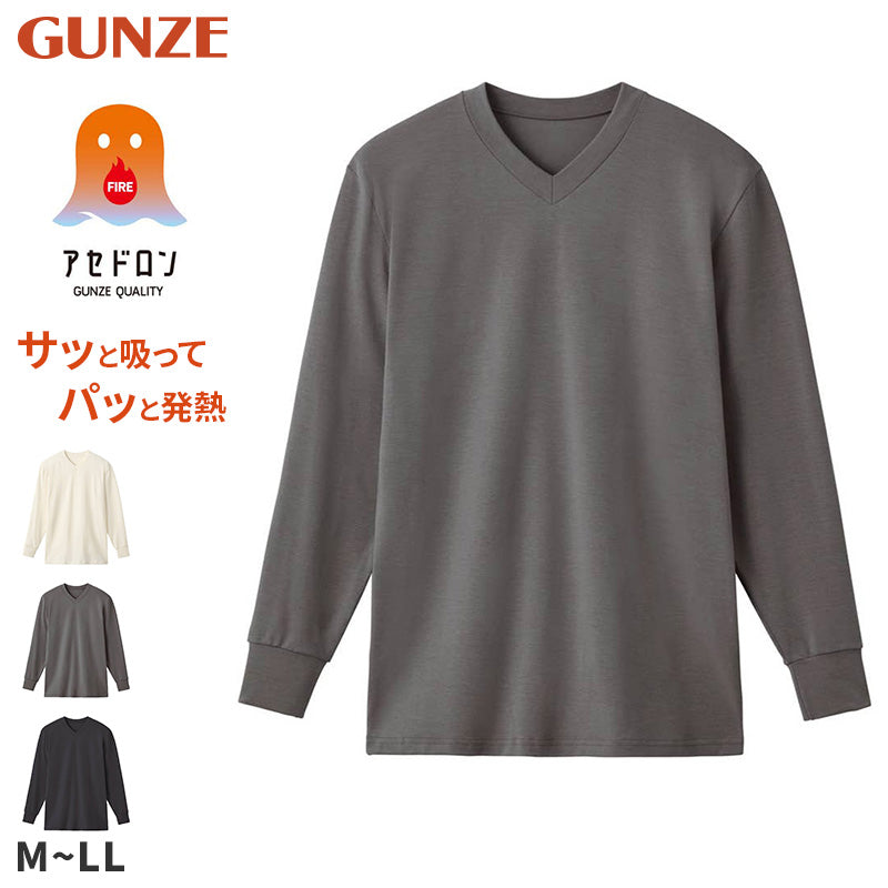 ファイヤーアセドロン メンズ インナー 長袖 Vネック グンゼ M L LL