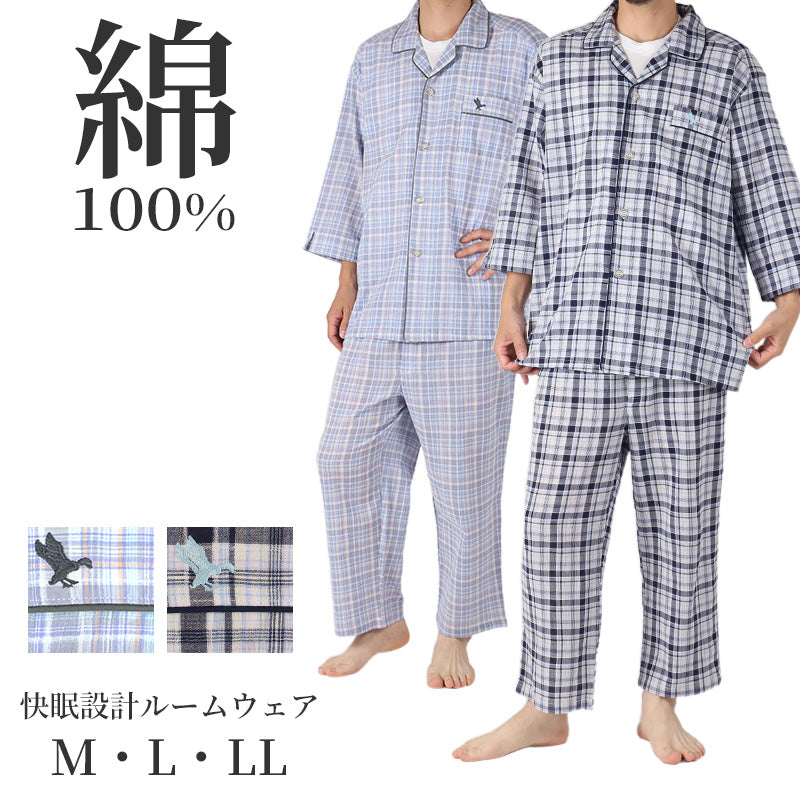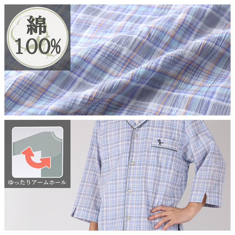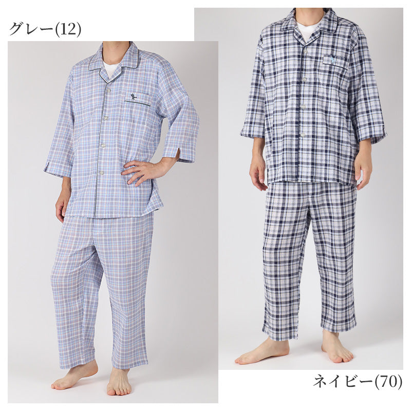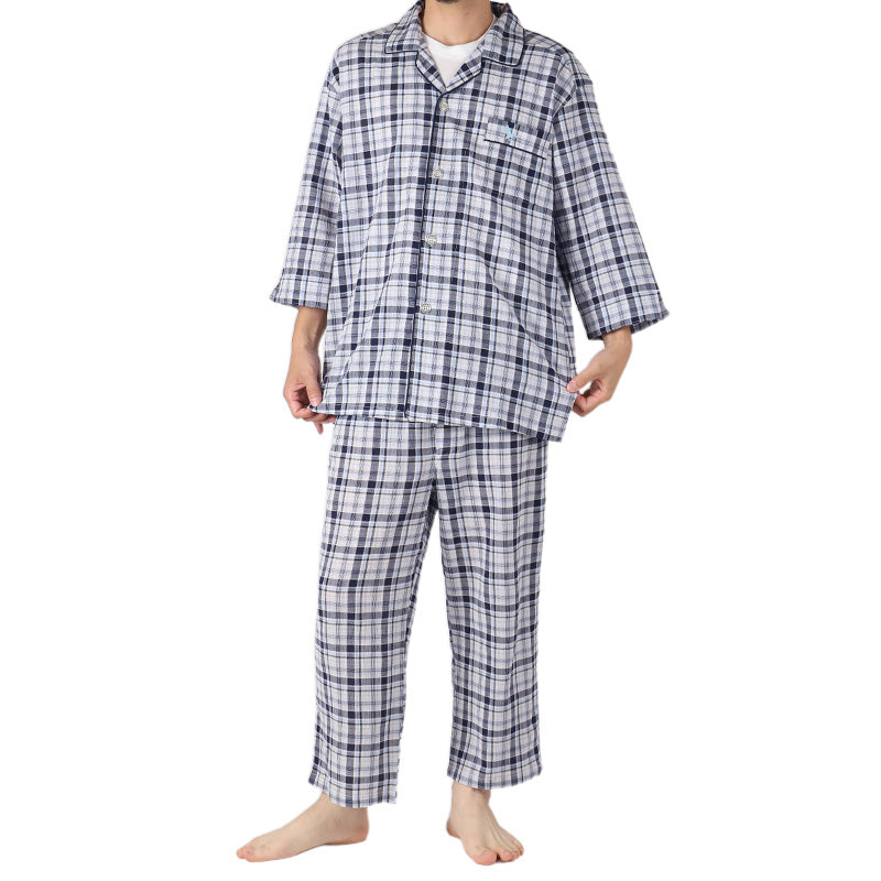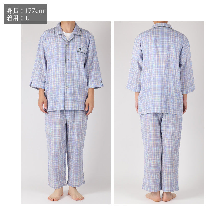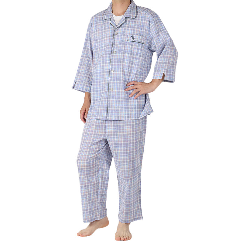 紳士 強撚クレープ 楊柳パジャマ M L LL