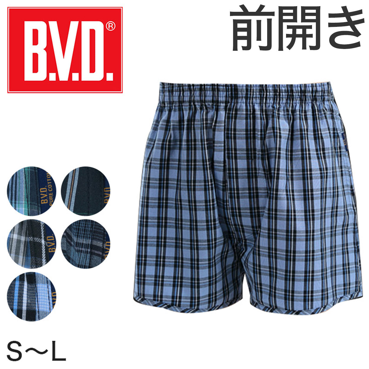 BVD トランクス メンズ 前開き 綿100% 柄おまかせ 先染めトランクス S~L