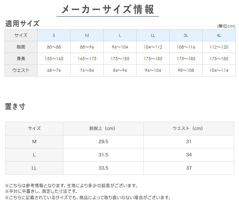 M・L・LLの3サイズ展開で、幅広い体型に対応。