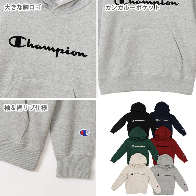 チャンピオン キッズ パーカー スウェット 子供 裏毛 綿 プルオーバー トップス 100cm~160cm 子供服 男の子 女の子 子ども フード コットン 100 110 120 130 140 150 160 (在庫限り)