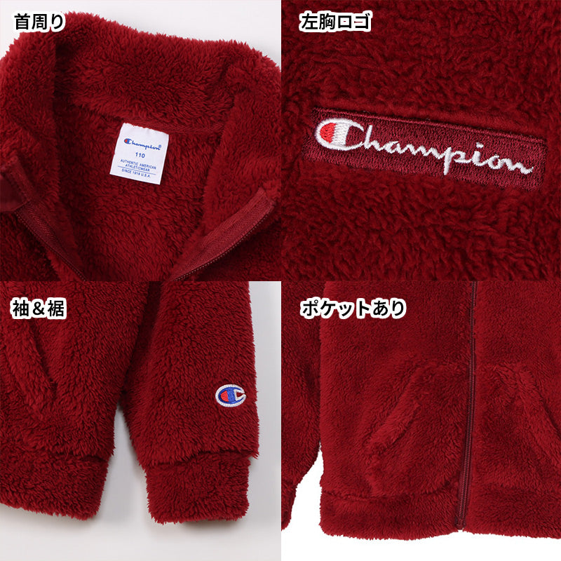 チャンピオン フリース ジャケット キッズ 裏起毛 ジップアップ 黒 赤 ネイビー 緑 ロゴ 部屋着 おでかけ おしゃれ アメカジ コーデ 100cm~160cm