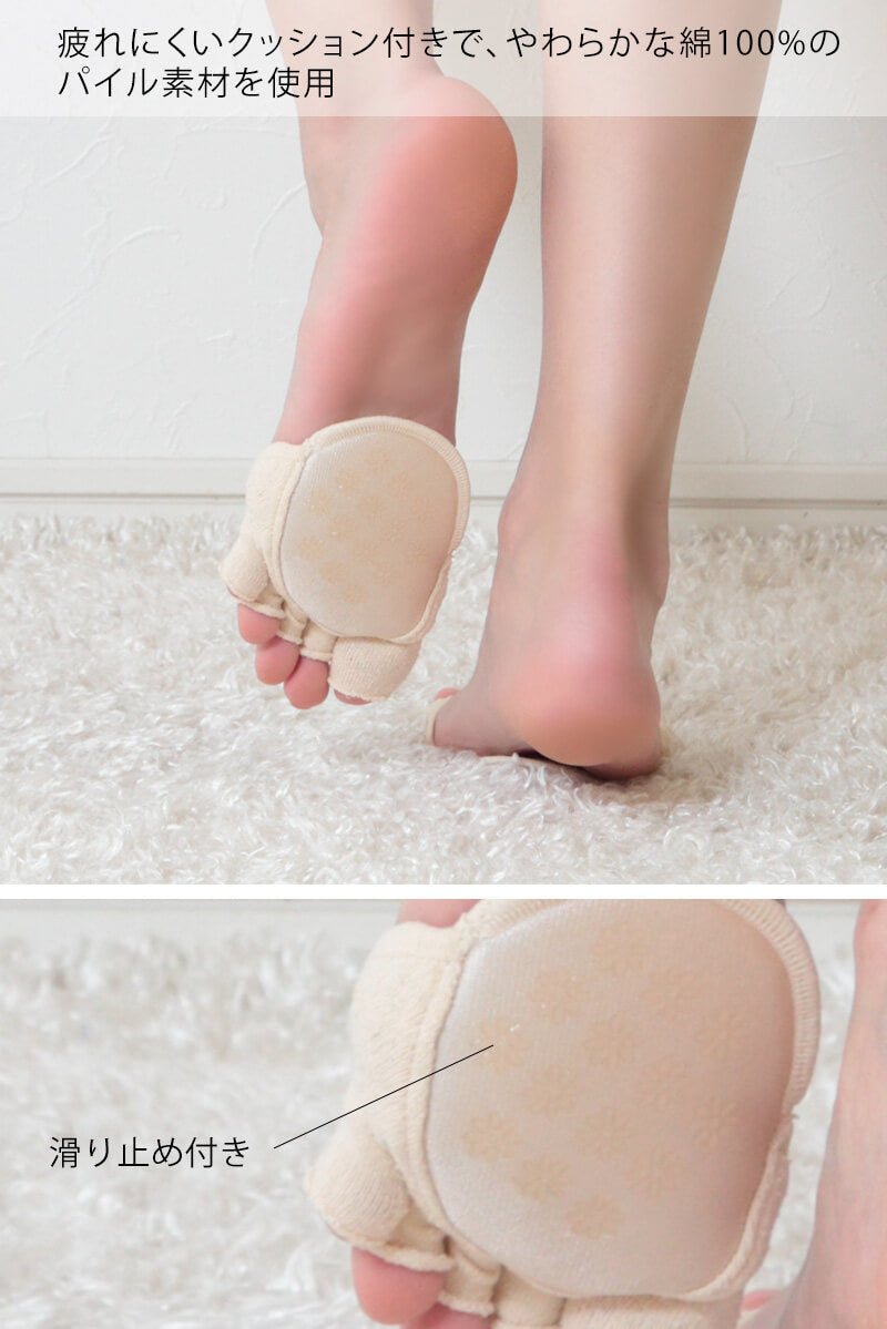 滑り止め付きのクッションは綿100%のパイルを使用しており、足の裏を優しくサポート。