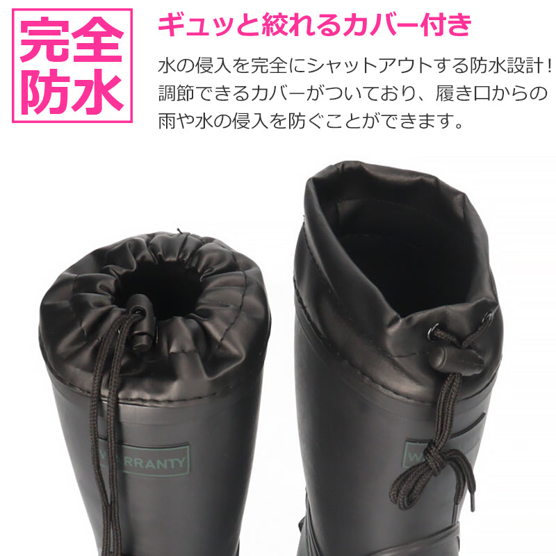 防水/履き口が絞れる/滑りにくいスパイク付き/やわらかい(屈曲性あり)/取り外し可能なカップインソール入り