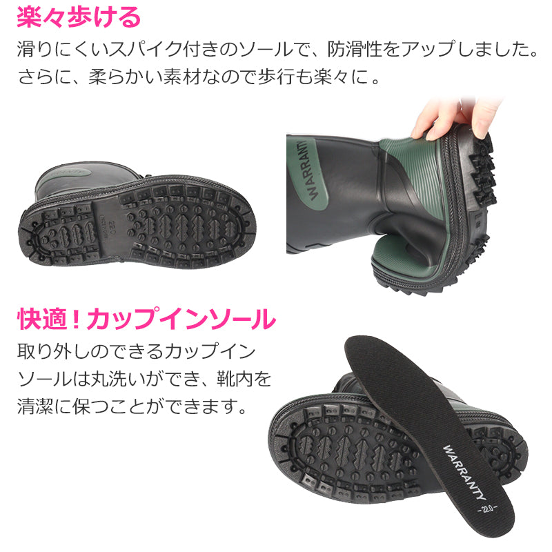・滑りにくいスパイク付きで濡れた地面での防滑性をアップ