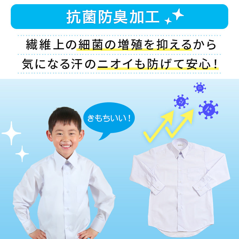 スクールシャツ 長袖 男子 カッターシャツ ホワイト 学生 フォーマル 無地 大きいサイズ 110cmA~180cmB
