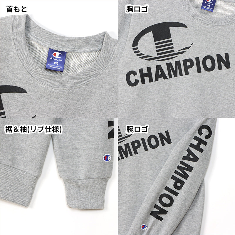 チャンピオン スウェット キッズ 綿 裏毛 グレー 黒 ネイビー ロゴ ダンス 部屋着 おでかけ おしゃれ アメカジ コーデ 130cm~160cm