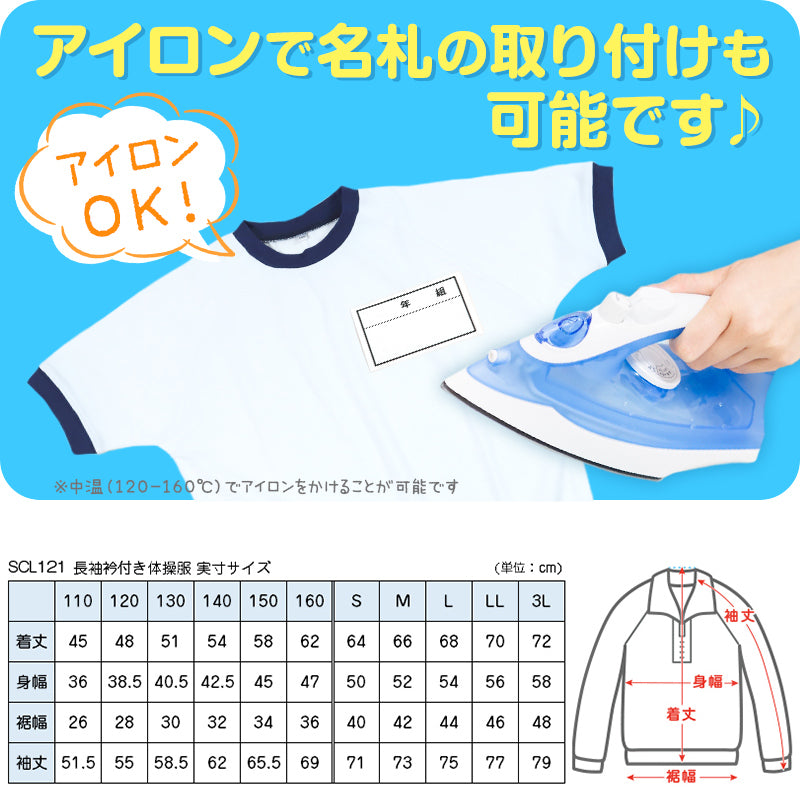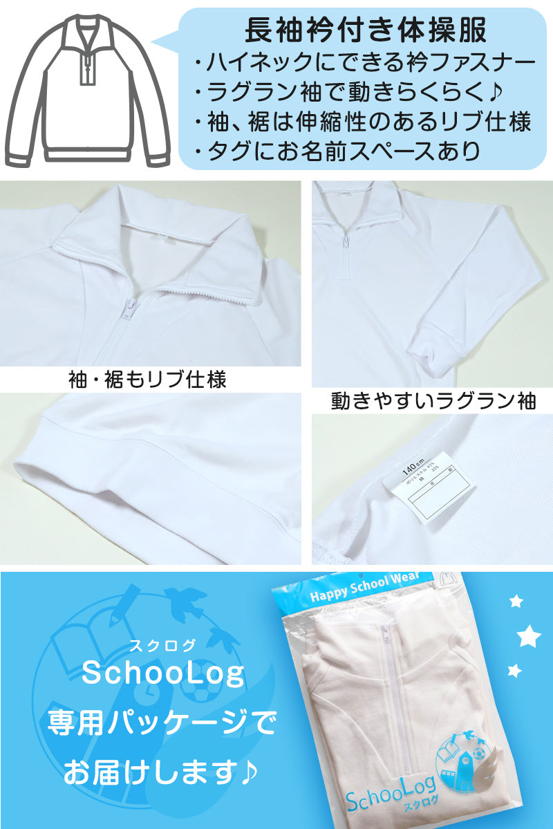 Schoolog ドライ素材&吸汗速乾 長袖衿付き体操服 110~160cm