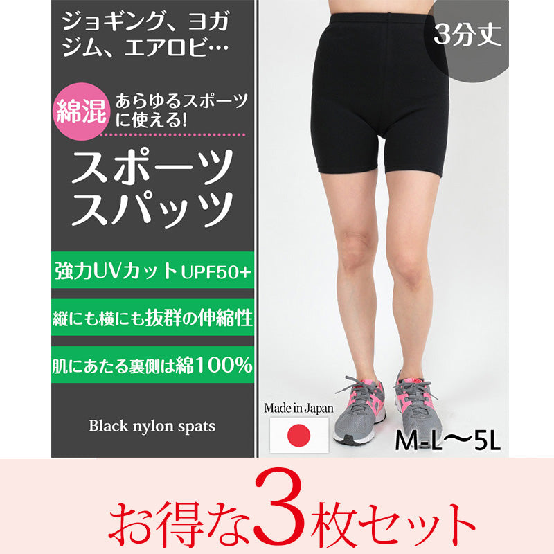 スパッツ 3分丈 綿 3枚セット M-L~5L