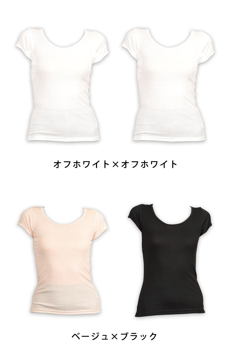脇汗 インナー 半袖 レディース 綿混 フレンチ袖 汗取り付き 2枚組 S~LL