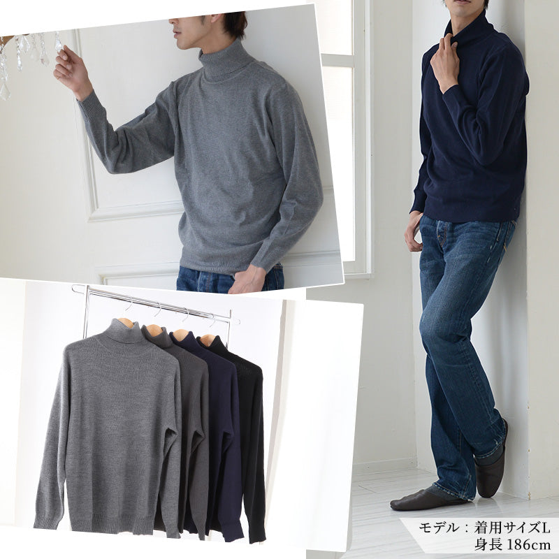 • 画像をギャラリービューアに読み込む, タートルネック メンズ セーター S~3L ビジネス カジュアル オフィス 秋 冬 ウール 防寒 大きいサイズ メンズニット メンズセーター 無地 シンプル スリム 薄手