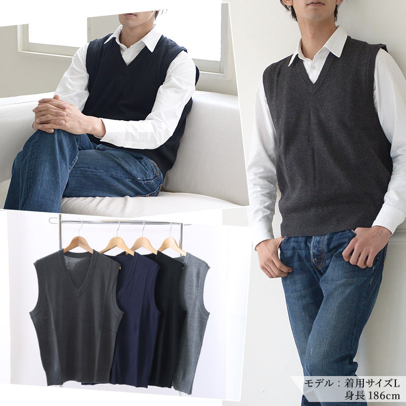 Vネック ニット メンズ ベスト ビジネス S M L LL 3L