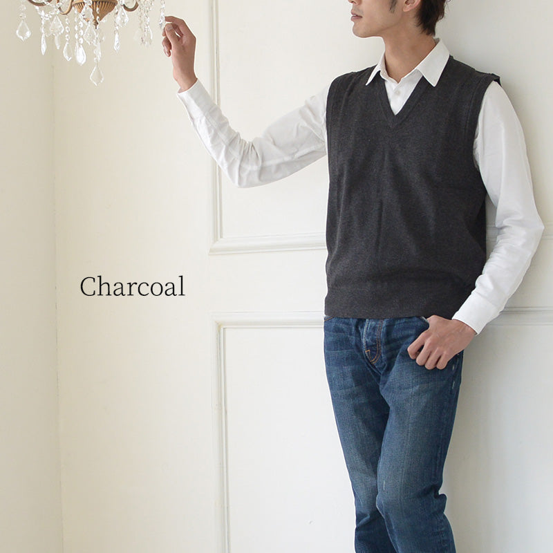 Sutetekoからメンズ用の薄手V首(Vネック)ニットベストです。