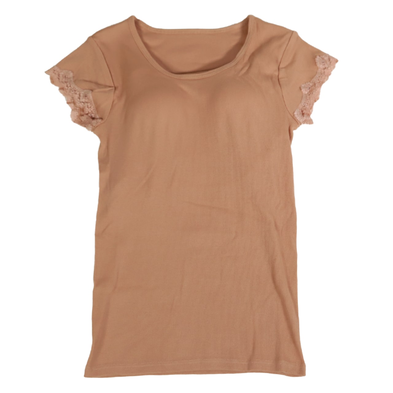 ブラトップ 半袖 カップ付 tシャツ 綿100 インナー レディース M~LL (カップ付き 半袖インナー Tシャツ フレンチ袖 下着 締め付けない ひびきにくい) (在庫限り)