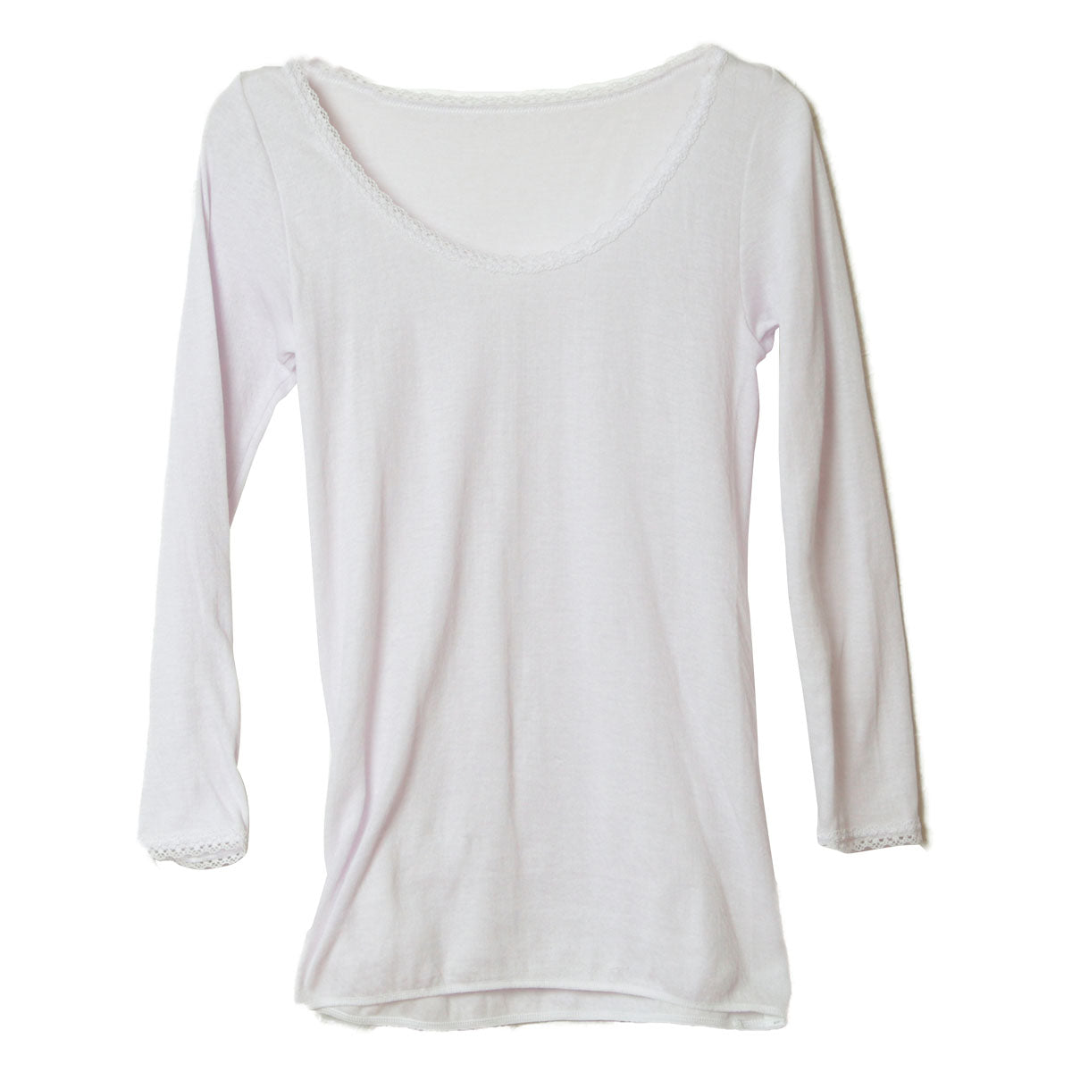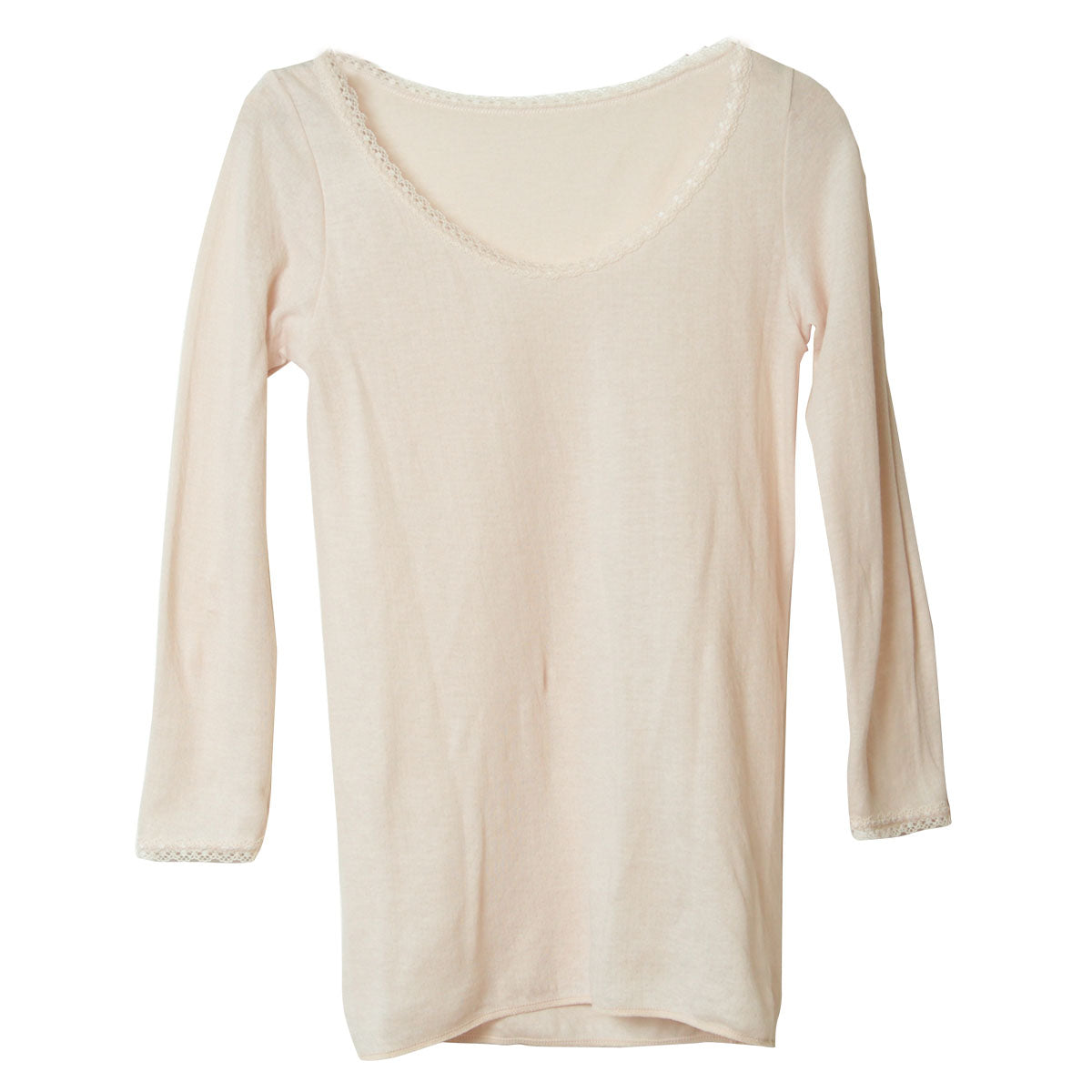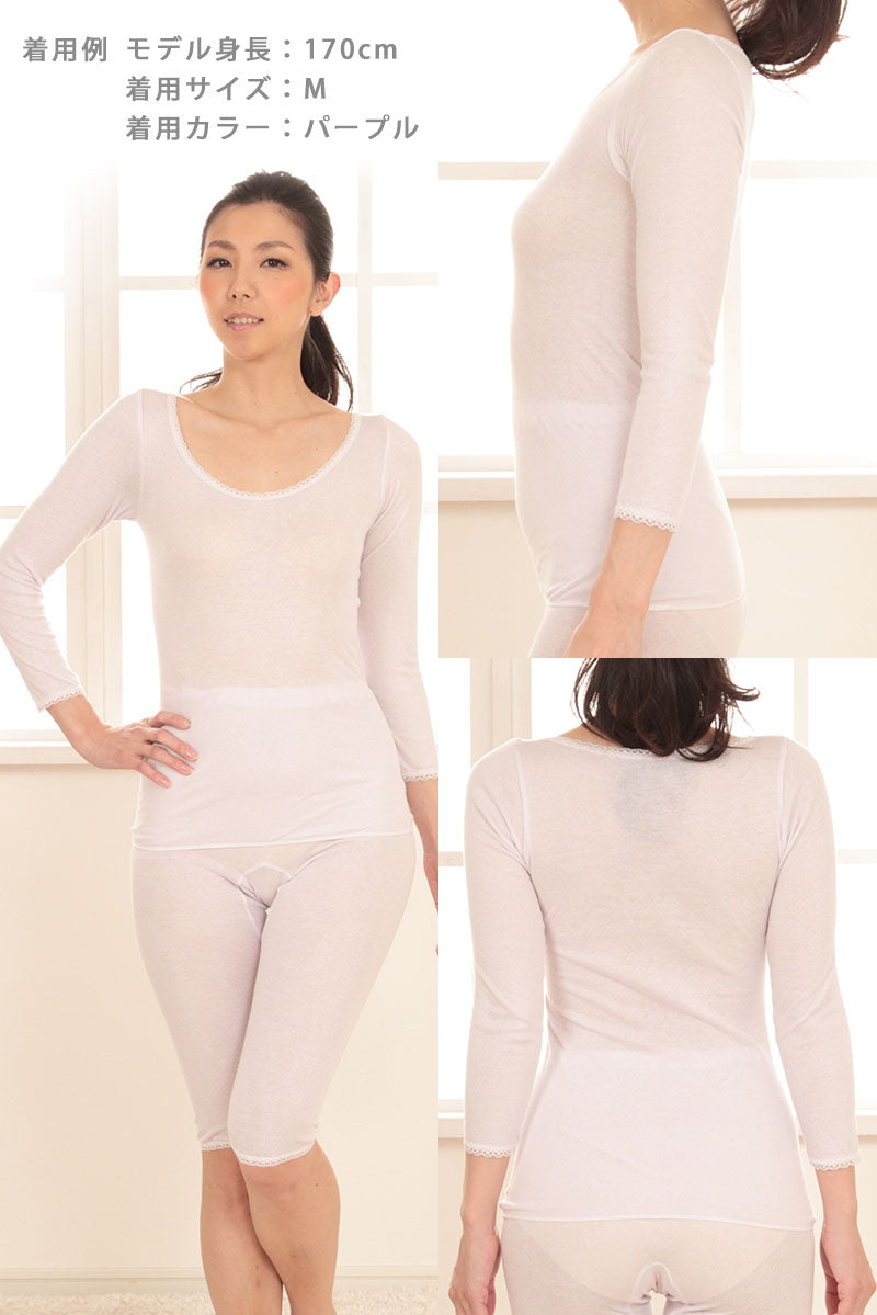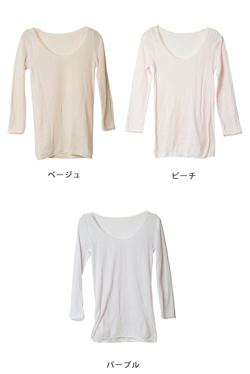 「ガーゼ編みインナーシリーズ」より、婦人用 綿100% 8分袖インナーです。