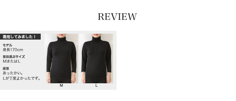 レディース インナー 長袖 裏起毛 タートルネック M~5L
