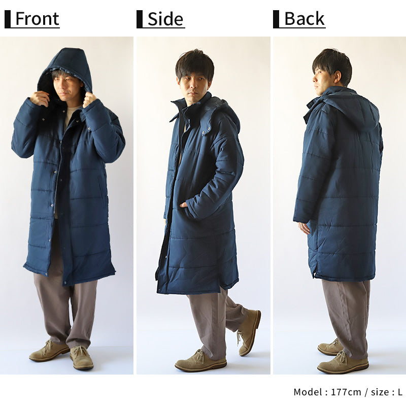 ベンチコート メンズ ロング 無地 撥水 防寒 防風 アウトドア 大きいサイズ 大人用 M~3L