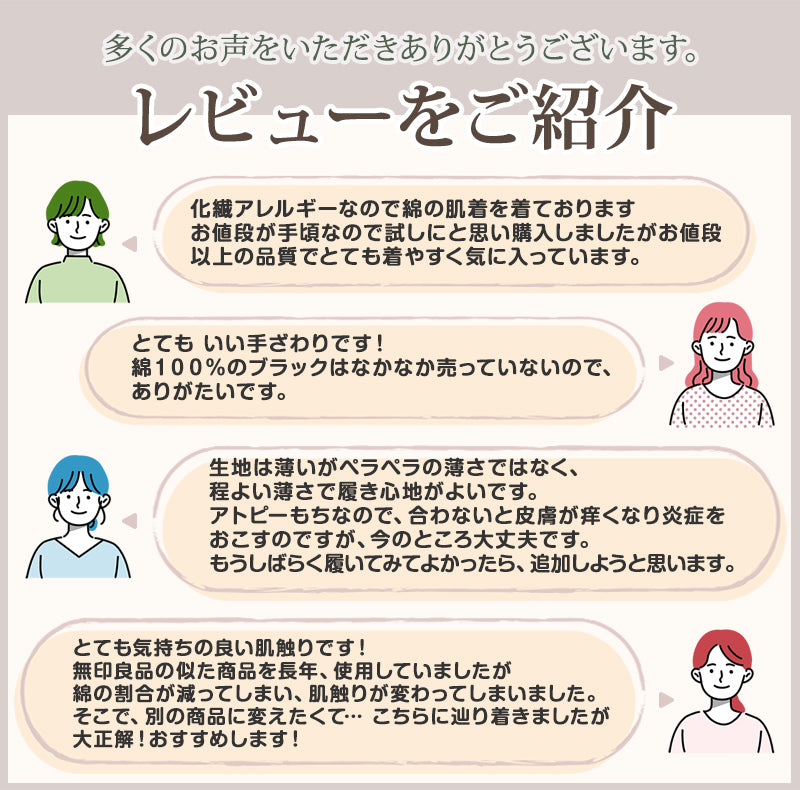 シンプルで気持ちいい!着心地を一番に考えたやわらかコットン100%インナーです。