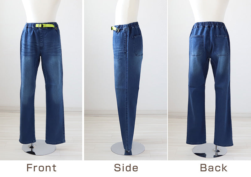 伸縮性に優れたのびのび楽チンデニム生地で、快適な着用感です。