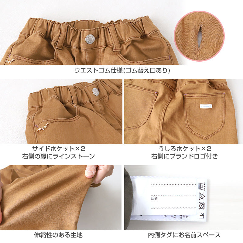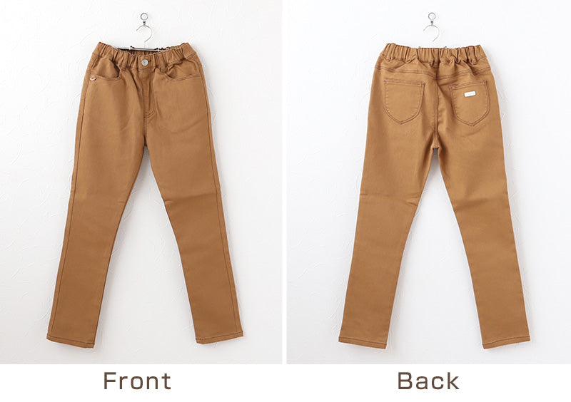 内側が超微起毛のパウダーストレッチ生地を使用した、女の子用ロングパンツ。