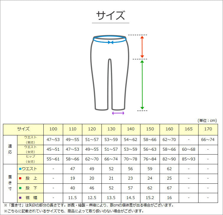 - 110cm(身長:105-115cm/ウエスト:49-55cm)