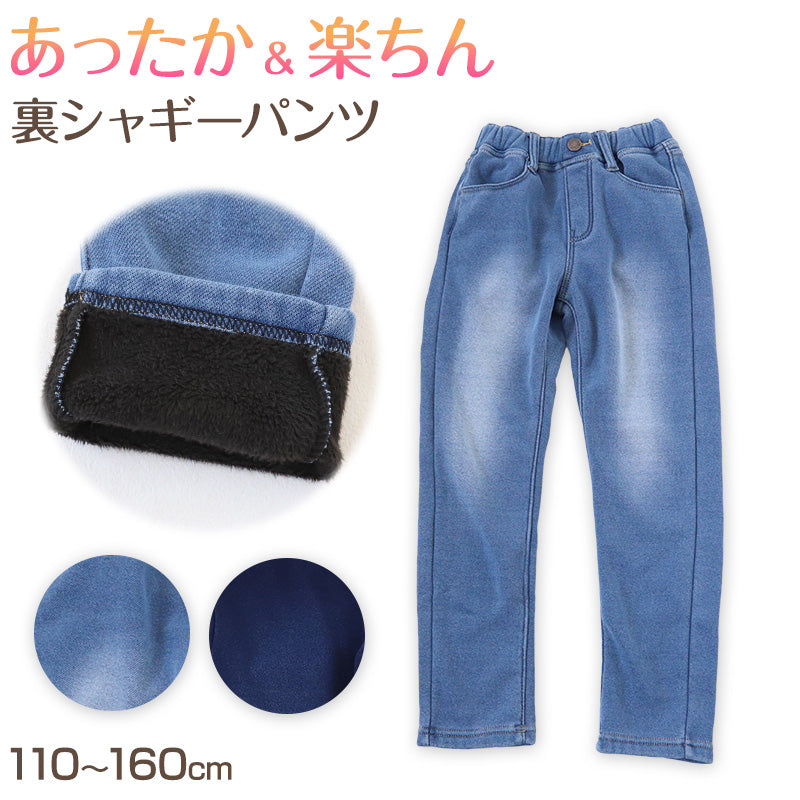 女の子 裏起毛 ストレッチ デニム 長ズボン ロングパンツ ボトムス 110 120 130 140 150 160cm 秋 冬 あたたかシャギーパンツ ジーパン ジーンズ ストレッチ キッズ ジュニア こども 子供 子供服 ボトムス 通園 通学 デイリー (在庫限り)