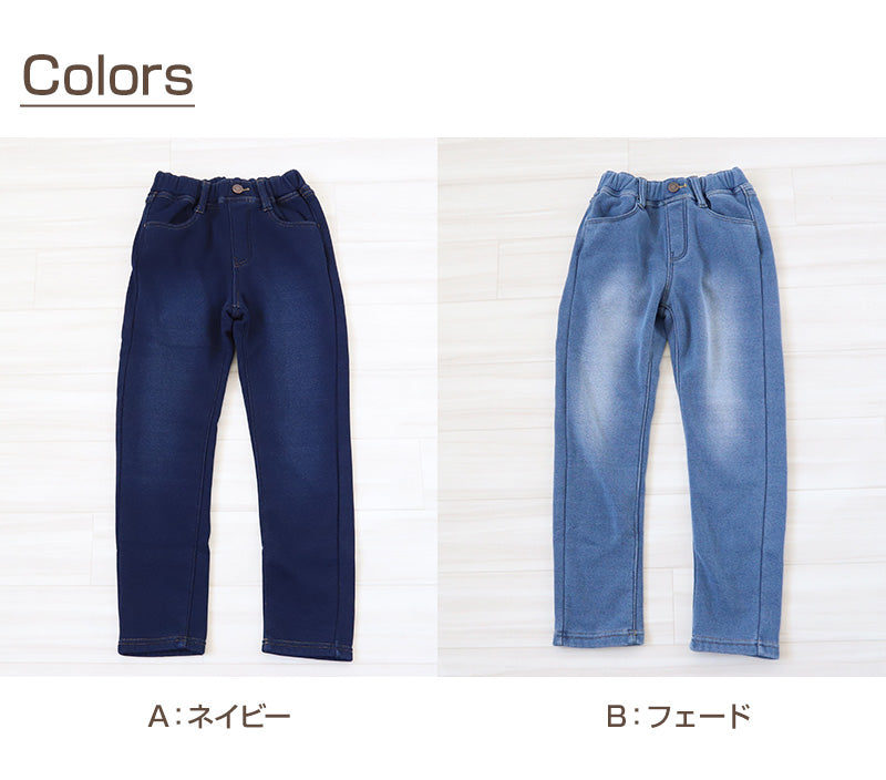 女の子 裏起毛 ストレッチ デニム 長ズボン ロングパンツ ボトムス 110 120 130 140 150 160cm
