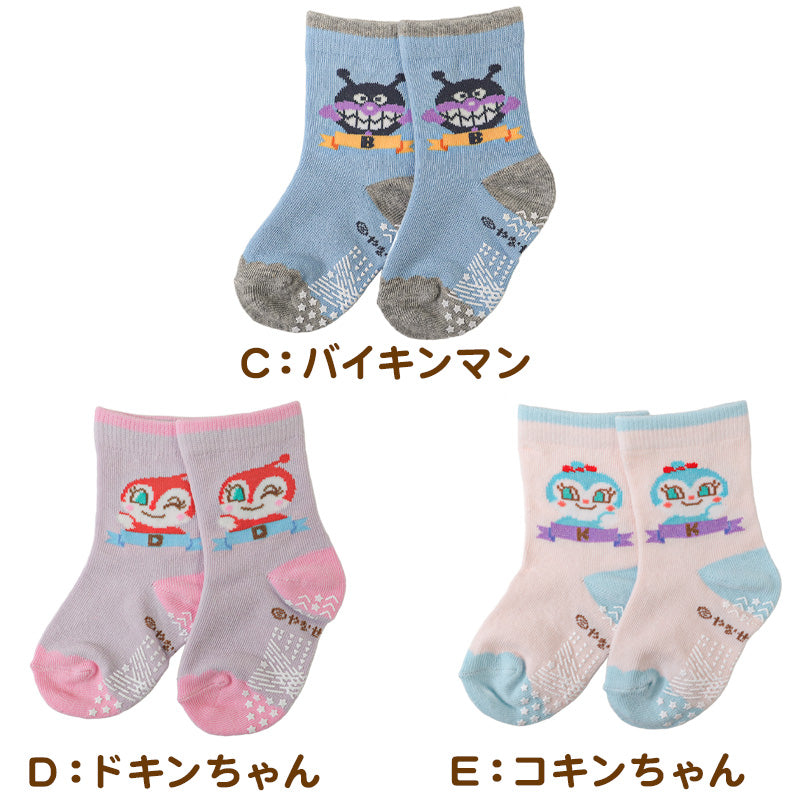 アンパンマン 靴下 キッズ ベビーソックス クルー丈 男の子 女の子 滑り止め 9~14cm