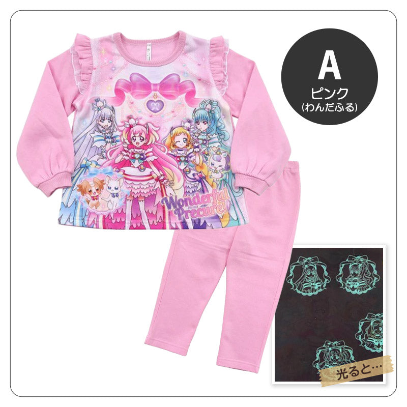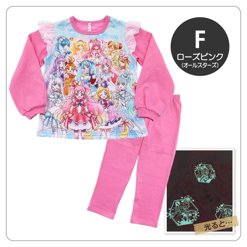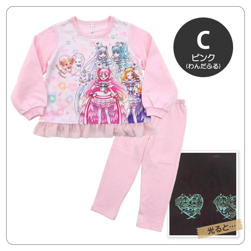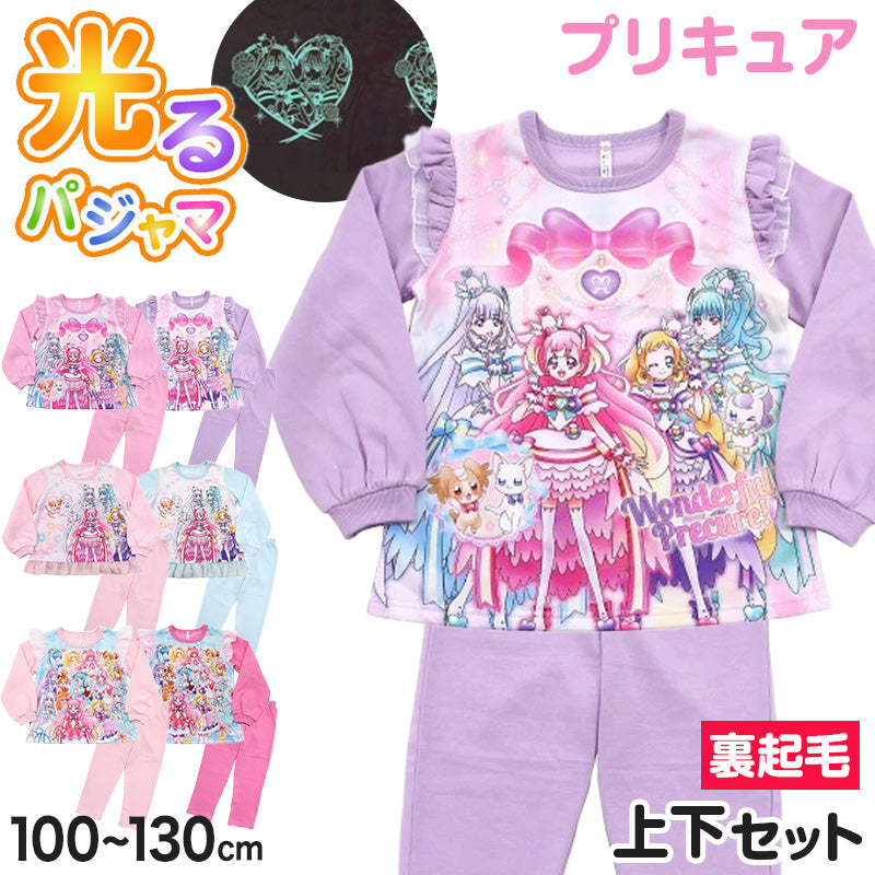 光るパジャマ プリキュア パジャマ 裏起毛 長袖 女の子 キッズ トレーナー 光る 冬 上下セット 100cm~130cm