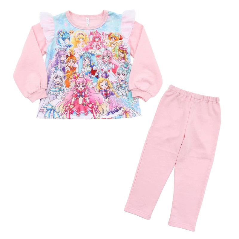 パジャマ上下/ルームウェア/ルームウエア/部屋着/寝巻き/寝間着/女の子用/綿混/大人気/人気キャラクター/バンダイ/BANDAI/通園/100/110/120/130/100cm/110cm/120cm/130cm/ぷりきゅあ/プリキュアシリーズ/広がるスカイプリキュア/デリシャスパーティプリキュア/バンダイ/桃色/pink/紫/むらさき/パープル/水色/青/ブルー k-room-win 48521 48522 48523/AIR/air365