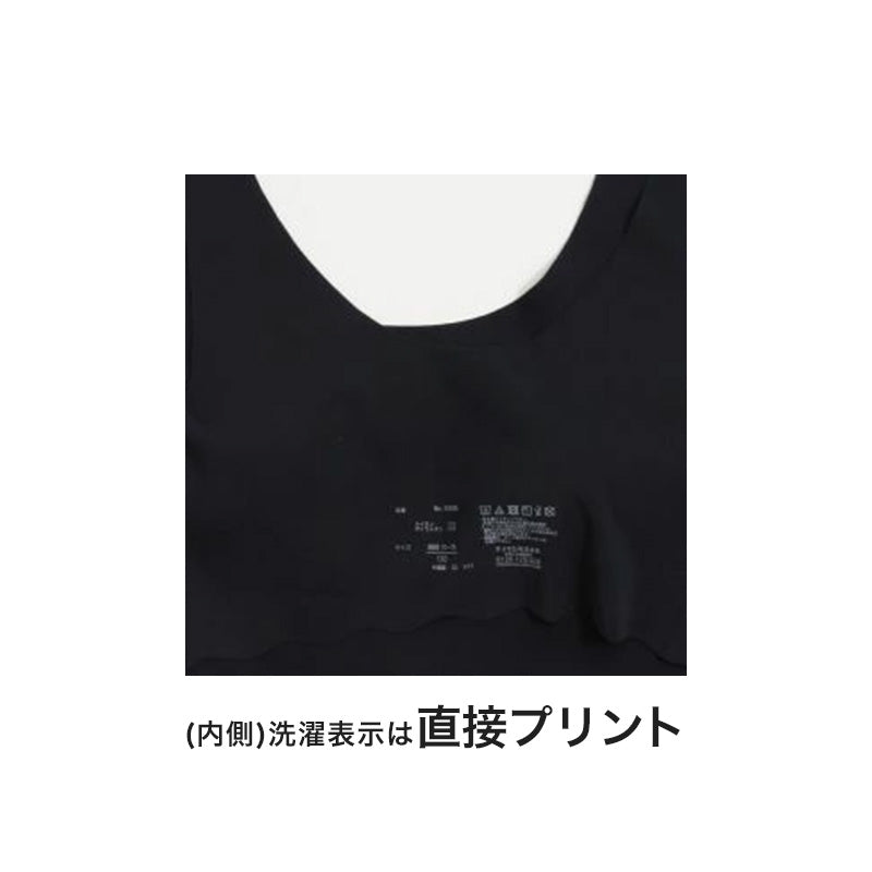 ストレッチ性あり(伸縮性あり) モールドカップ付き (取り外し可能) フリーカットでひびきにくい(切りっぱなし仕様) 洗濯表示は転写プリント アンダーゴムなし かぶりタイプ (ホックなし)