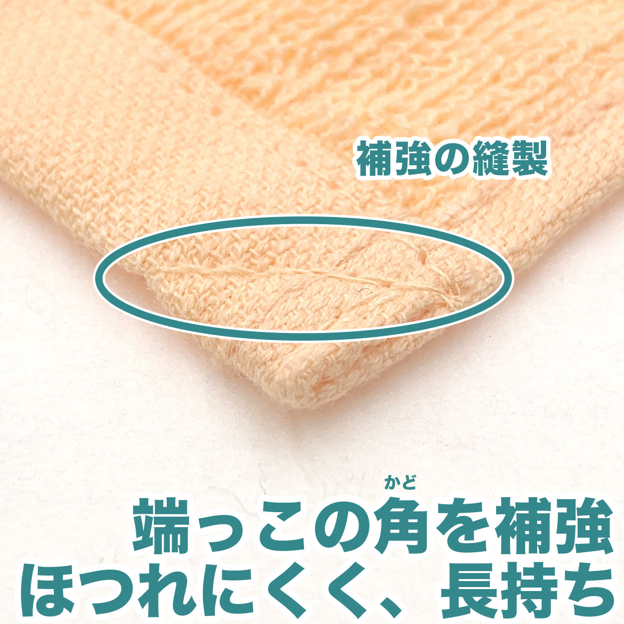 タオルの端の角(かど)には補強の縫製がほどこされていて、ほつれにくく長持ちします。
