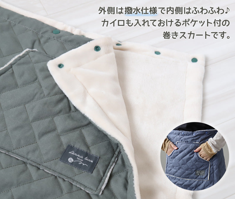 巻きスカート ラップスカート 撥水 裏ボア ボア 撥水 防寒 あったか キルティング スカート 裏起毛 M-L (巻スカート ミディアム丈 おしゃれ ひざ掛け シンプル 可愛い かわいい ひざかけ ブランケット ポケット付き もこもこ ふわふわ 冷え対策 無地 毛布) (在庫限り)