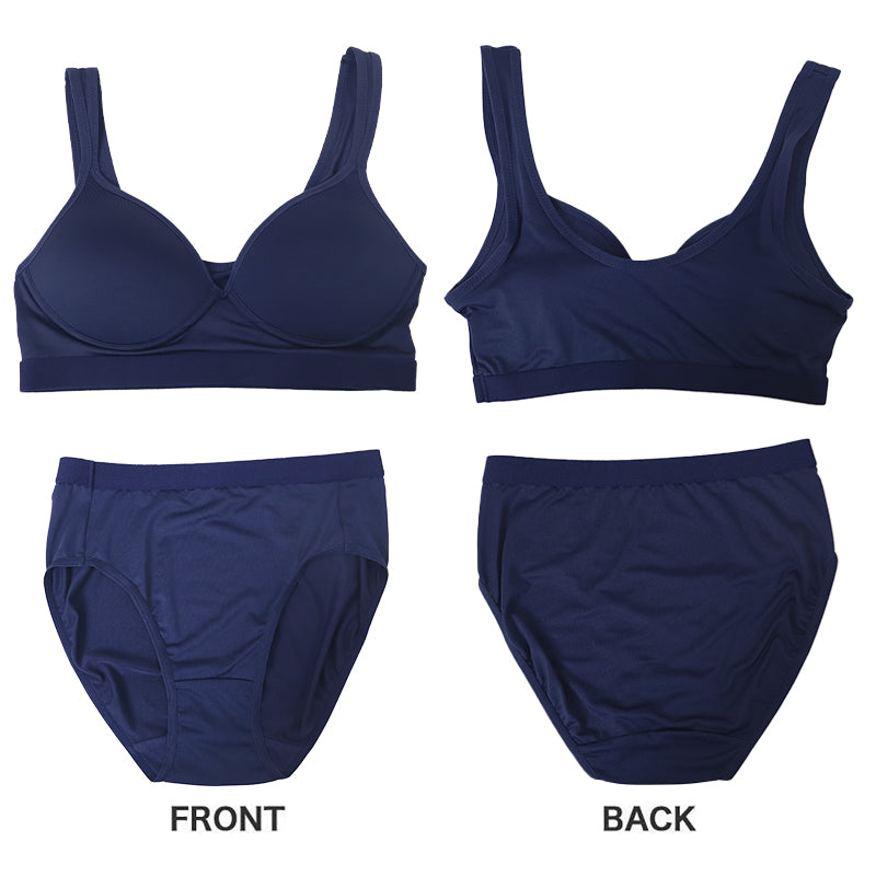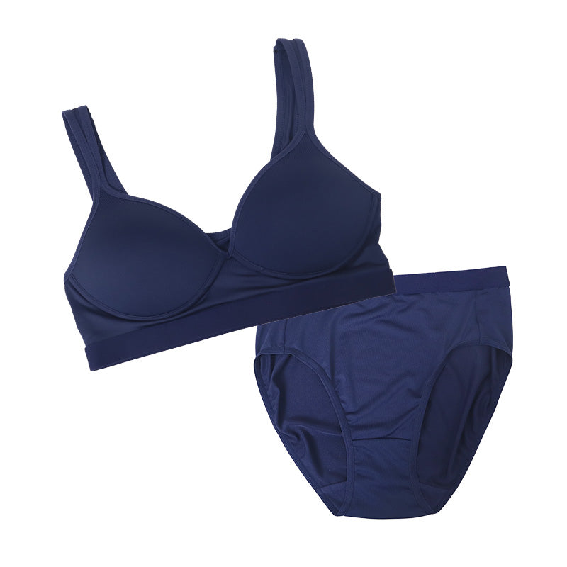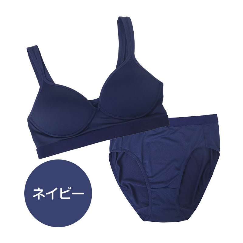 カラーはネイビーとブルーの2色展開。どちらも清潔感のあるカラーで、毎日のインナー選びが楽しくなる♪