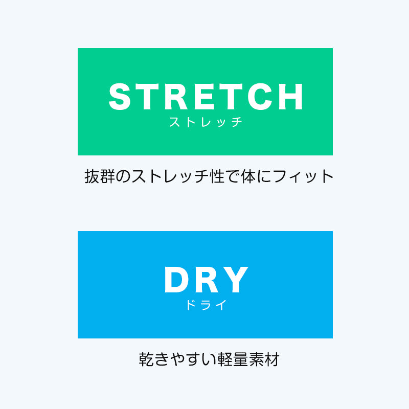 →汗をかいてもすぐに乾いてくれる【 ドライ素材 】を採用。
