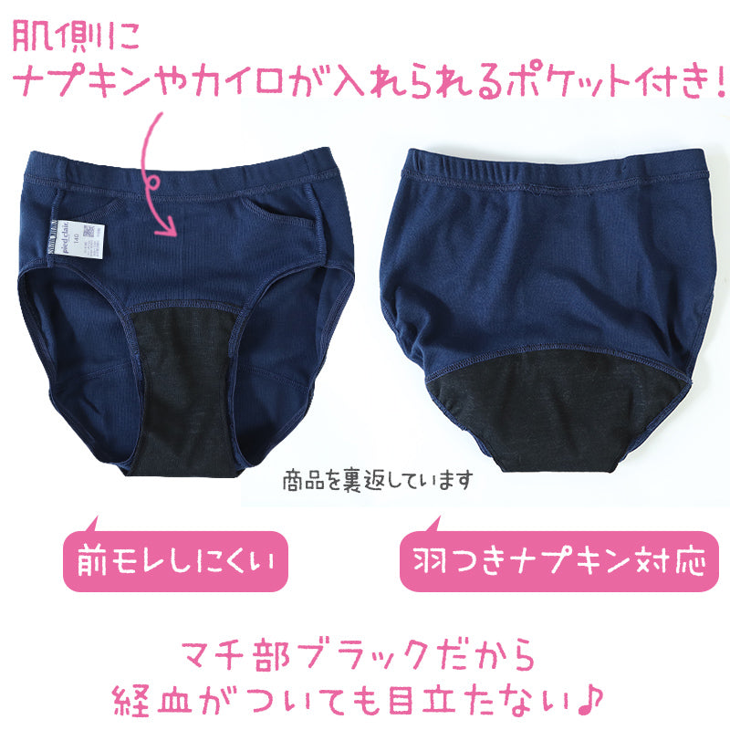 手ぶらで持ち運びOK!な、ナプキンやカイロが入れられる肌側ポケット付き