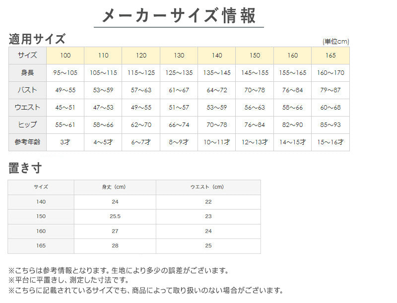 - 140cm(ウエスト:53~59cm ヒップ:70~78cm)