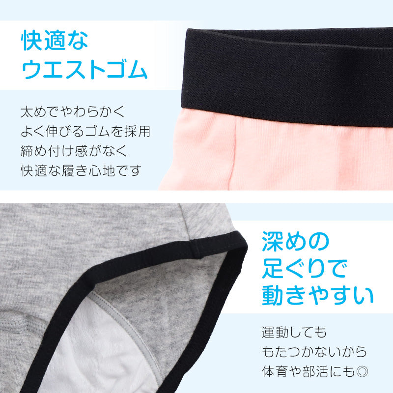 【女の子】/【ショーツ】/【はきこみ普通】/【130cm】/【140cm】/【150cm】/【160cm】/【ホワイト系】/【グレー系】/【ブラック系】/【通年】/【抗菌防臭】