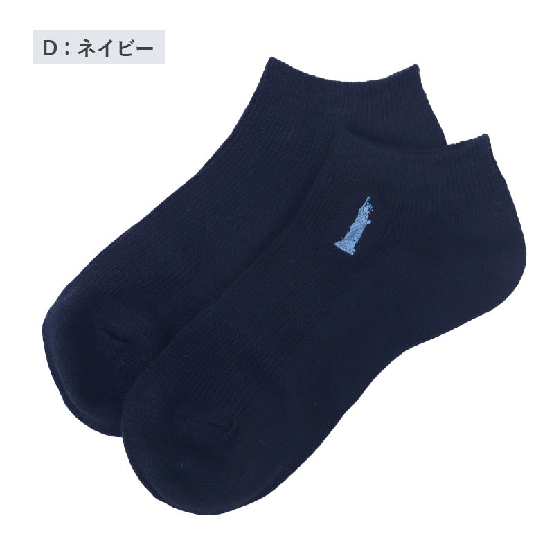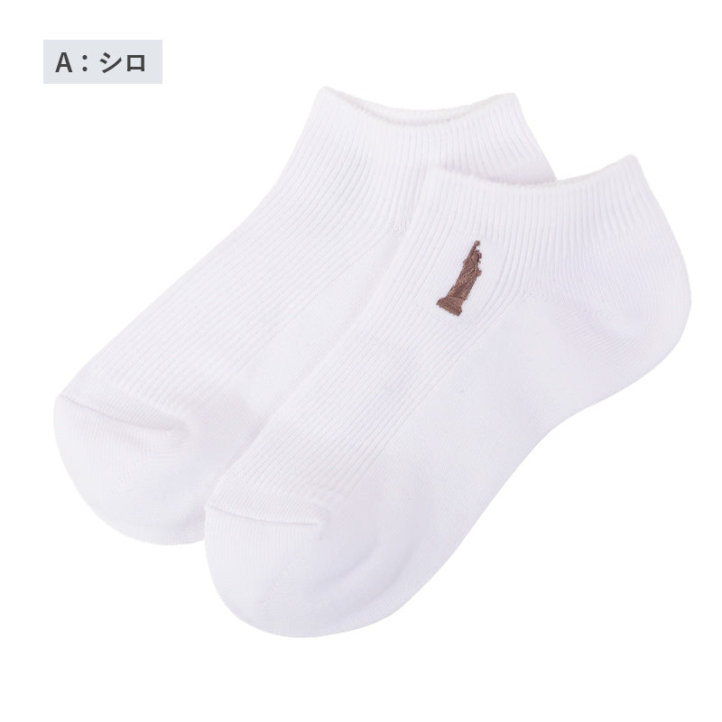 自由の女神がデザインされた刺繍入りの定番ソックスです。