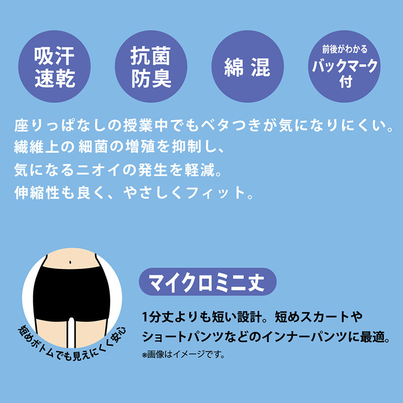 綿混/吸汗速乾/抗菌防臭/前後が分かるバックマーク付