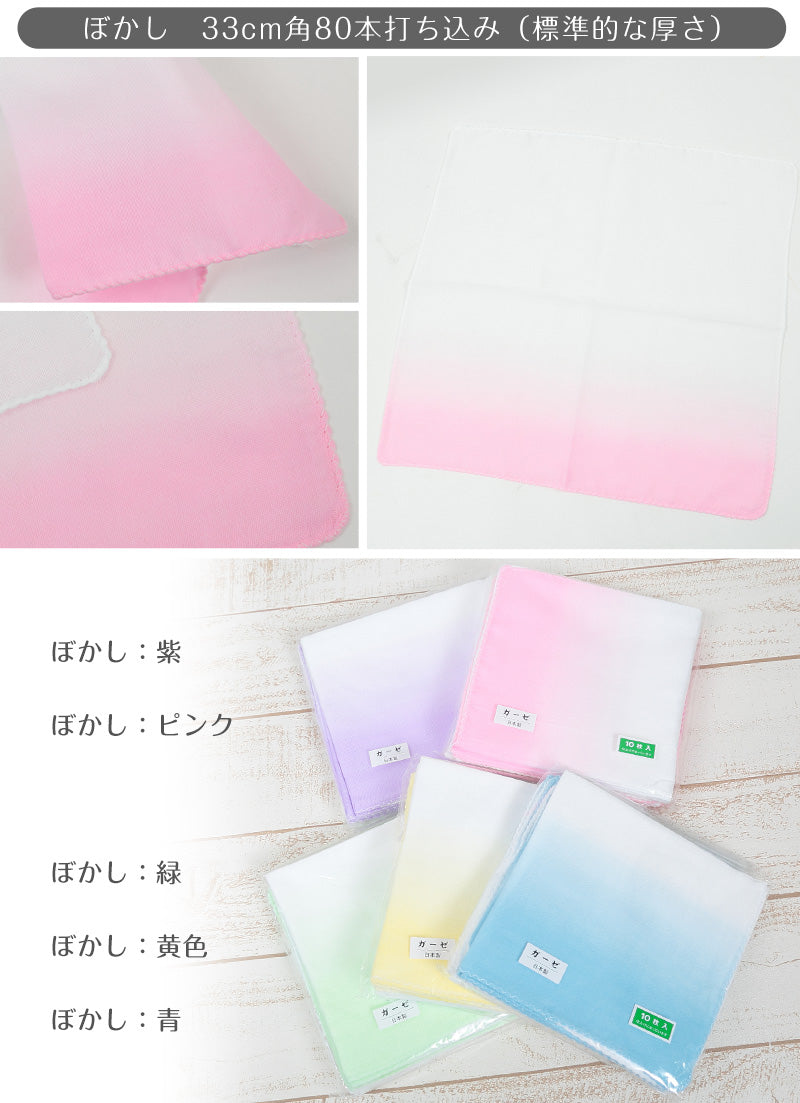 ガーゼハンカチ 赤ちゃん 10枚組 日本製 綿100% カラー ぼかし 33cm角