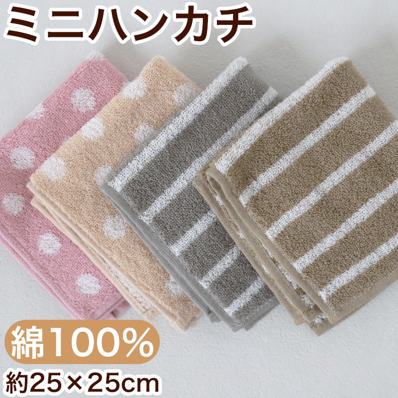 ハンカチ ドット ボーダー ストライプ 綿100% キッズ 子供 保育園 幼稚園 小学生 約25×25cm