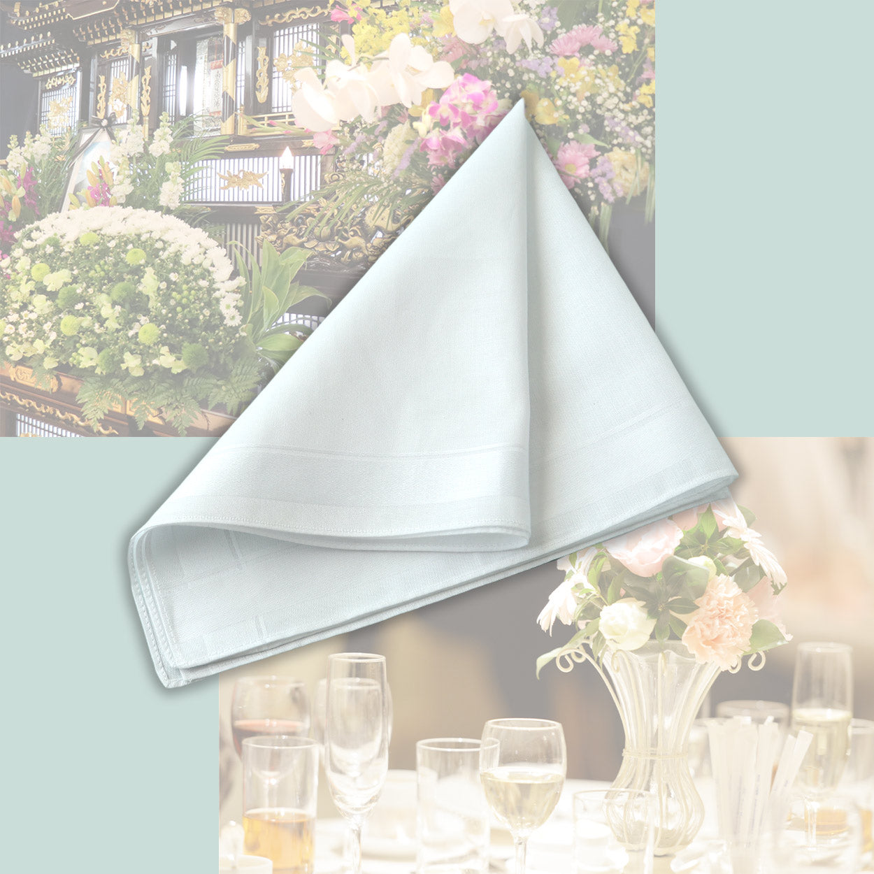 結婚式や披露宴、ウェディングといった祝いの席や、お葬式や告別式など冠婚葬祭でつかえるシンプルなハンカチです。