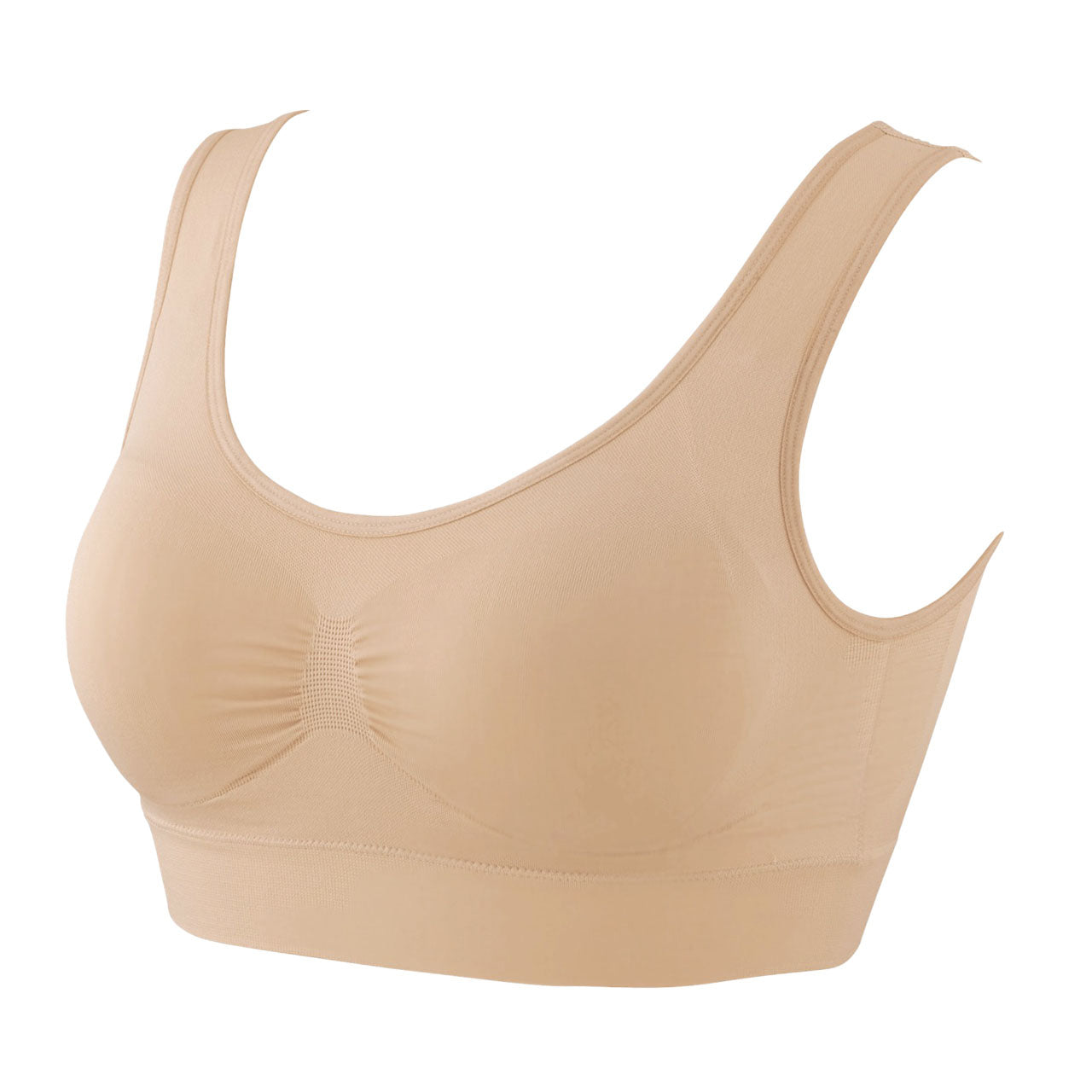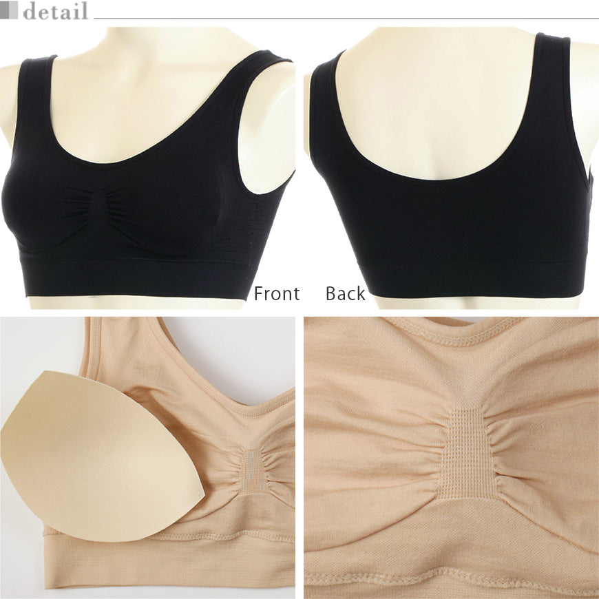 モールド成型カップ(取外し可能)/幅広ストラップ/幅広アンダー/フラット幅広設計/タグレス仕様(洗濯表示直接プリント)