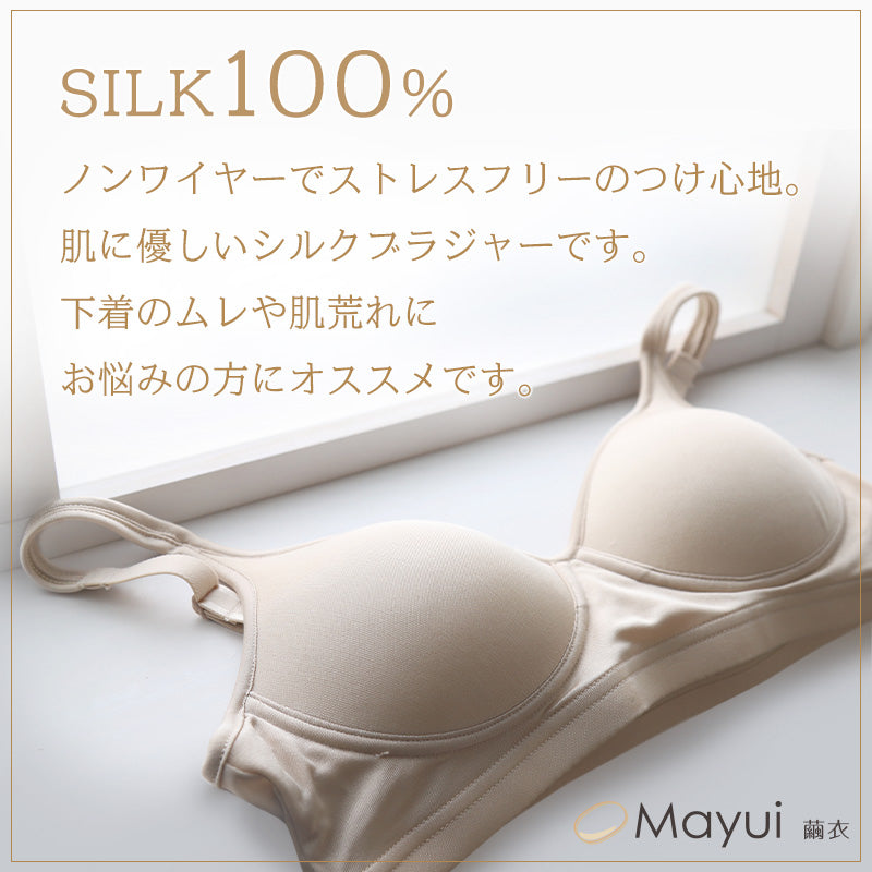 身生地シルク100%のモールドカップのノンワイヤーブラジャーです。